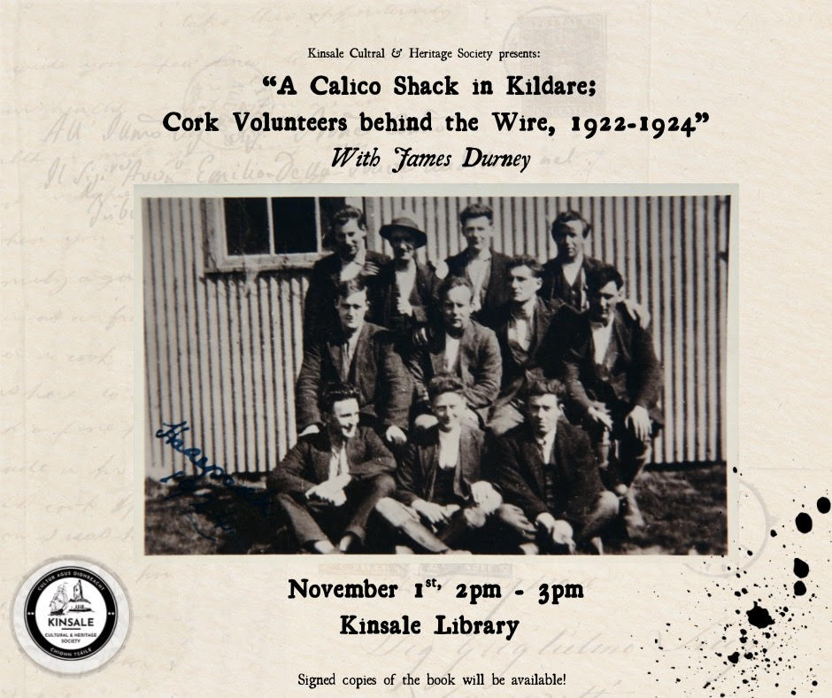 Kinsale, Co. Cork — Discover Cork’s rebels’ stories from the Curragh prison camps, with historian James Durney at Kinsale Library, Saturday, November 1st at 2pm.